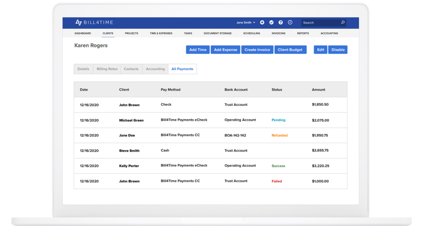Yes, with Bill4Time Payments you can allow clients to make payments to your firm’s trust or operating account with 100% compliance with IOLTA guidelines, the ABA’s Rules of Professional Conduct, and the rules of all 50 state bar associations. Earned and unearned fees are completely separated at all times (including during the online transmission process). Operating account payments are available now and trust account payments will be available in June!